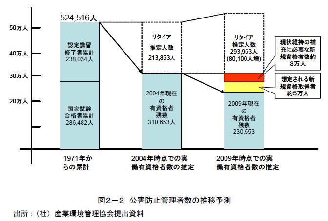 公害防止管理者受験対策 kougai.netのホームページを作成していて、『実際「公害防止管理者の有資格者」の必要性はどれくらいあるのだろうか?』と思っていました。そこで、色々調べてみて興味深い資料を発見しました。 その経済産業省の資料によると、『これからは、公害防止管理者のニーズ(需要)が高くなる』との考え方が示されていました。その理由はというと、公害防止管理者有資格者の人材枯渇のためです。 以下、経済産業省の資料より引用